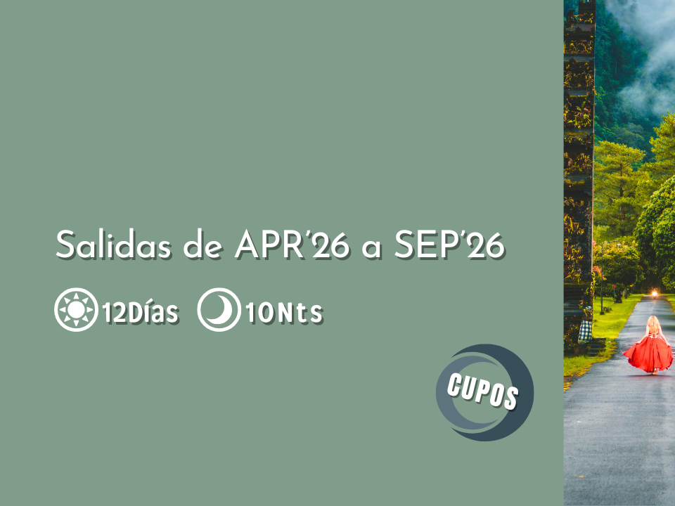 12 días / 10 noches - Salidas del 14 APR 2026 al 06 SEP 2026
